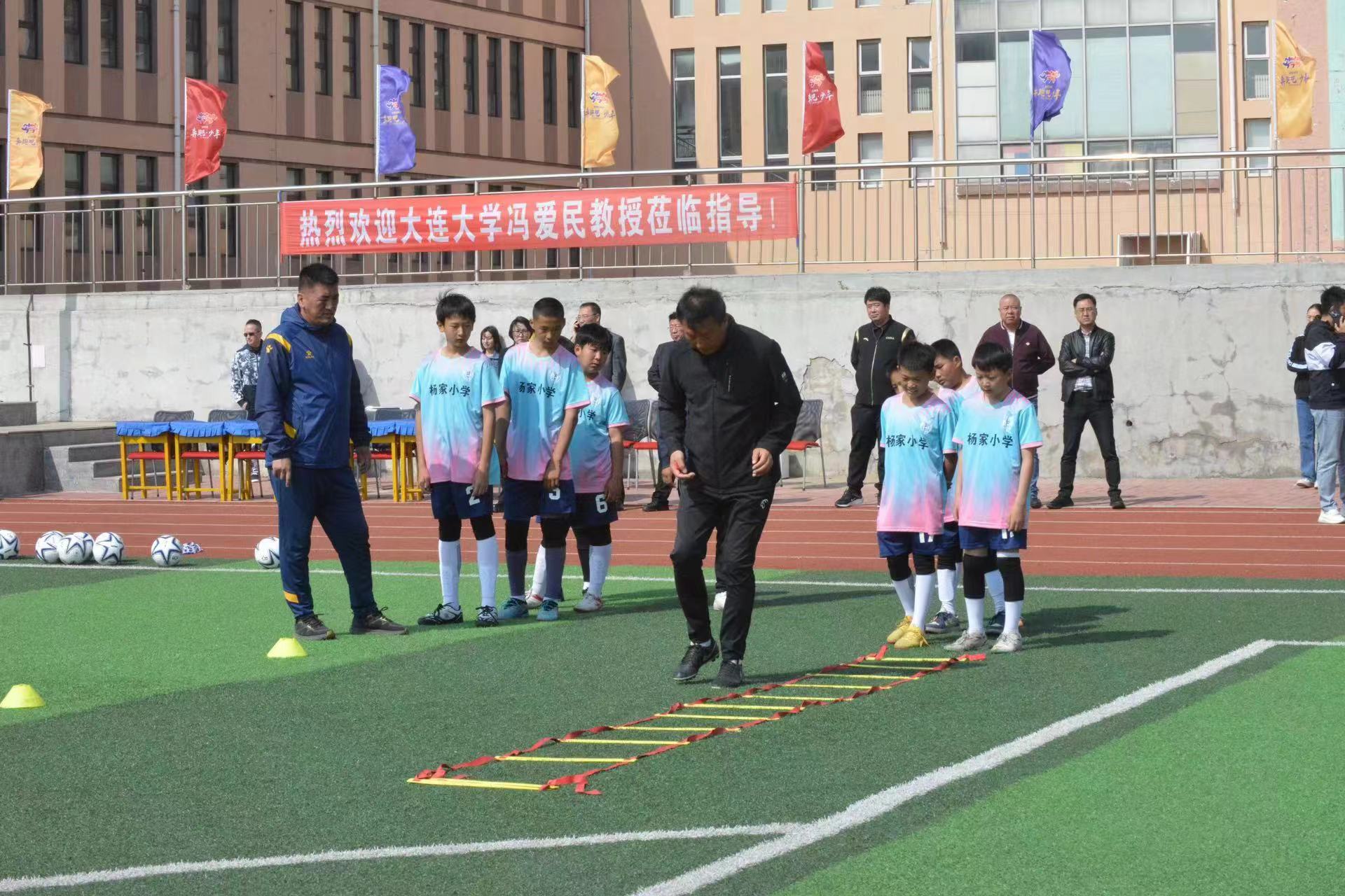 活动特邀瓦房店市足球项目顾问、大连大学教授冯爱民,为杨家乡中小学生讲授运动热身、体能训练、基本动作、团队精神、爱国主义等要素内容。示范课上,冯教授言传身教,耐心传授,小朋友们听得认真、看得仔细、练得专注,沉浸其中,得到了很多启发。以本次送足球示范课进乡村校园活动为契机,瓦房店市将形成市、区多部门联动的有效机制,陆续推送理念前卫、形式多样、丰富多彩的多项目示范课程,惠及乡村校园,点亮青春之光,推动广大青少年拓展体育视野,提高运动技能,培养健身习惯,磨炼坚强意志,促进身心健康。