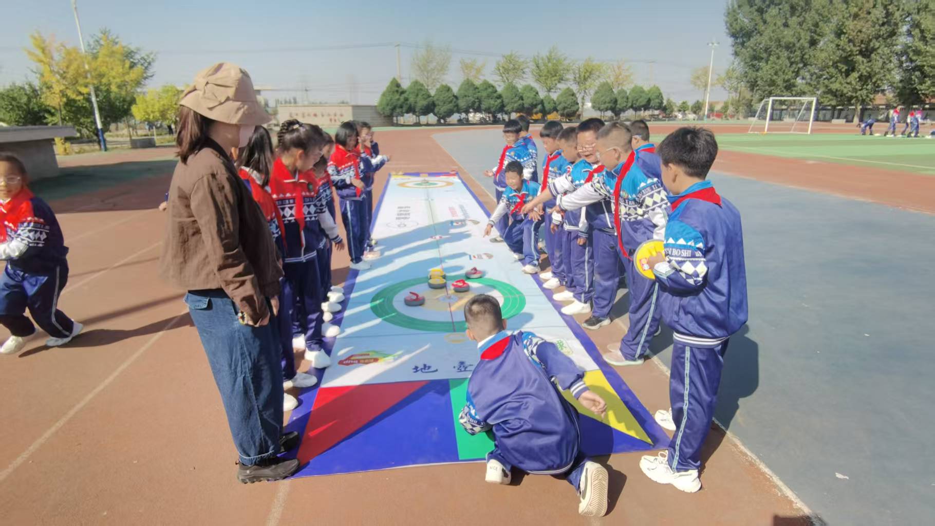 操场内,省冰雪运动协会提供了陆地冰壶、单板滑雪、高山滑雪、越野滑轮、滑冰模拟练习器、冬季两项等冰雪运动装备,配备冰雪运动专业教练员师资,分区、分批对参与活动的师生进行教学培训。让同学们尽情体验由冰雪运动带来的激情与快乐。