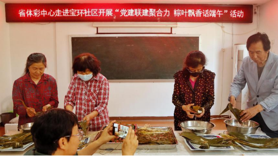体彩进社区,粽情送欢乐。5月28日,辽宁体彩中心党支部走进沈阳市和平区宝环社区,与社区居民共同开展“党建联建聚合力 粽叶飘香话端午”活动,包粽子比赛、顶鸡蛋、制作五彩葫芦等活动,与居民们一起迎接端午节的到来。活动结束后,中心党支部代表上门为社区困难居民送去了粽子等慰问品。