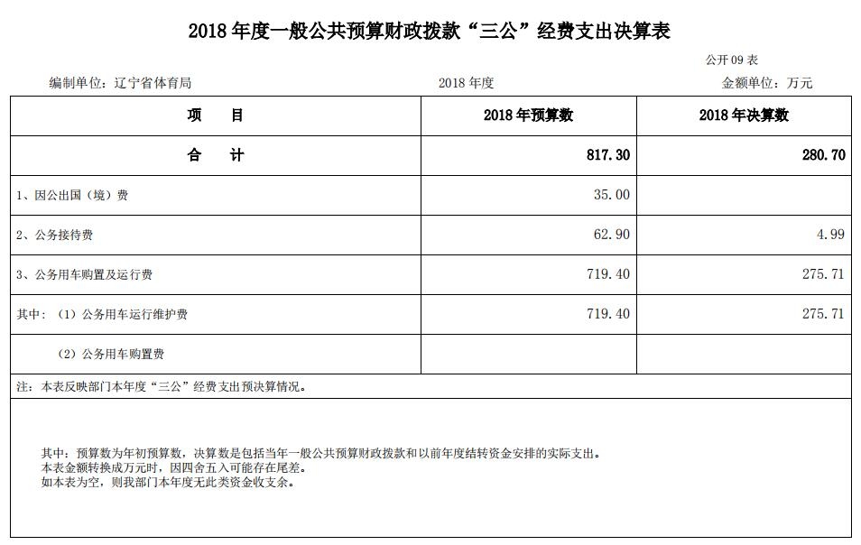 2018年度一般公共预算财政拨款安排的“三公”经费支出280.7万元,完成年初预算数817.3万元的34%,决算数小于年初预算数的主要原因是按照中央及省委、省政府关于厉行节约、改进工作作风、密切联系群众中央八项规定等有关要求,严格控制三公经费支出,压减公务接待费及公务用车购置及运行费。其中:因公出国(境)费为0万元,公务接待费为4.99万元,公务用车购置及运行维护费为275.71万元。